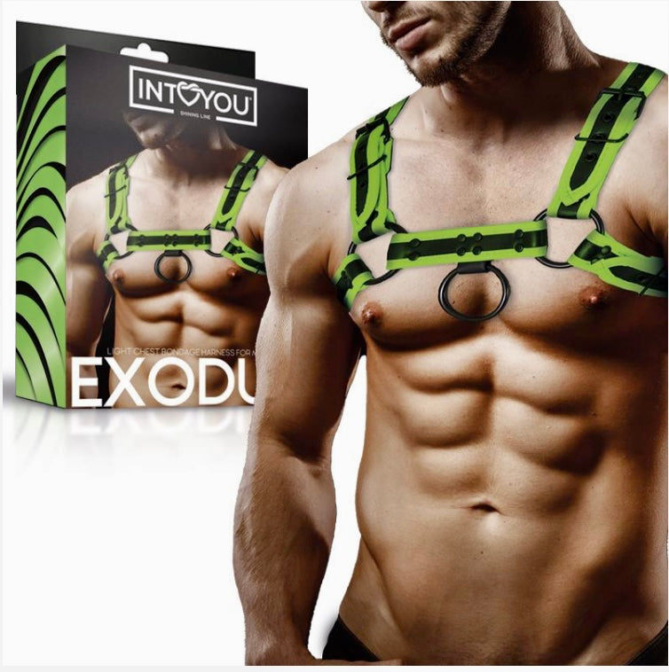 ARNÉS BONDAGE PARA PECHO QUE BRILLA EN LA OSCURIDAD