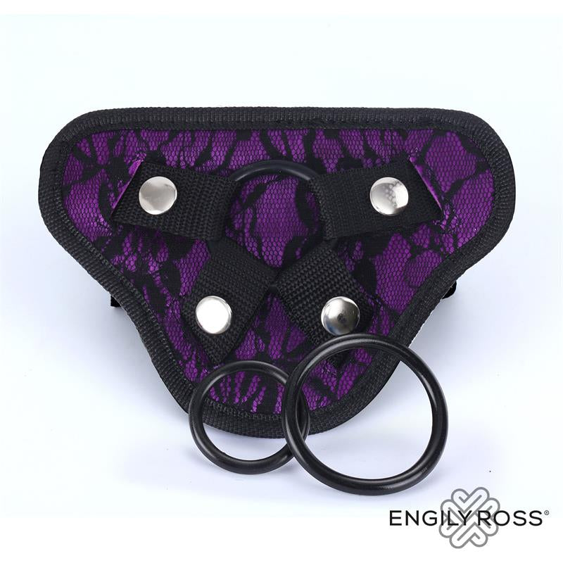 Aquí tenemos uno de los dos arneses universales de Dildox by Engily Ross. Este arnés incluye 3 anillos de silicona, de tres medidas diferentes, ideales para que puedas elegir que dildo te apetece utilizar en cada ocasión. El arnés en sí es ajustable, con correas que van en tu cintura y en las ingles, podrás ajustarlo hasta que lo tengas en la posición más cómoda para ti.