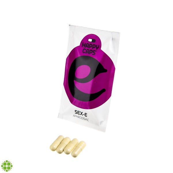 Sex-E es la fórmula perfecta para una velada romántica (y o salvaje!) Con tu amante. Contiene un amplio espectro de hierbas que mejoran el estado de ánimo, mejoran el placer sexual, aumentan la resistencia y mejoran el flujo sanguíneo a las zonas erógenas. Sex-E es el más accesible de los Happy Caps. Incluso las personas que no están acostumbradas al uso de estimulantes pueden disfrutar de esta fórmula sin problemas.