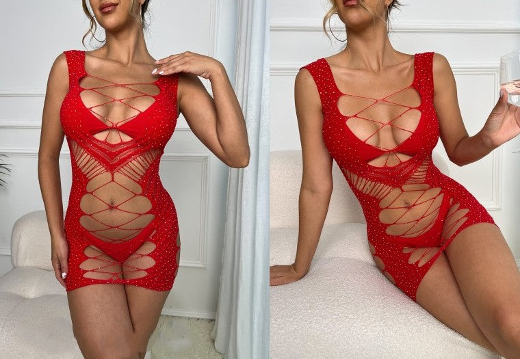 Disfruta el glamour con este vestido rojo con piedras adornando la cintura. Los detalles artesanales dan un toque único de lujo. El tejido suave y ligero te mantendrá cómoda todo el día.